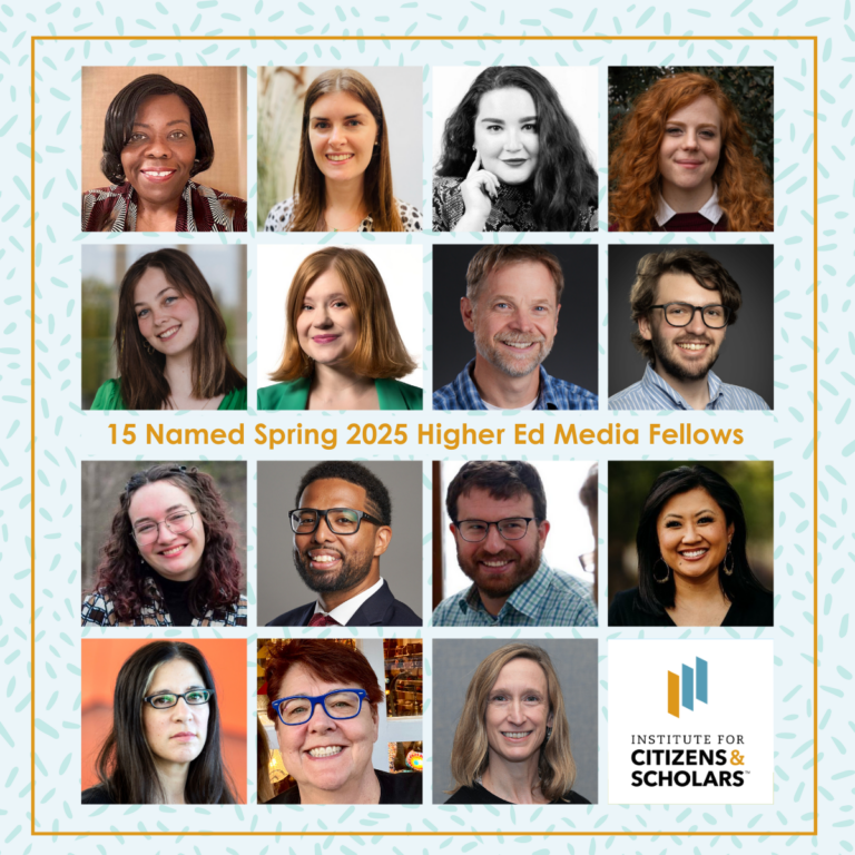 The Institute for Citizens & Scholars is pleased to announce its eighth class of journalists named to the Higher Education Media Fellowship, supported by ECMC Foundation. The 15 outstanding journalists represent a variety of news outlets, regions, and media.